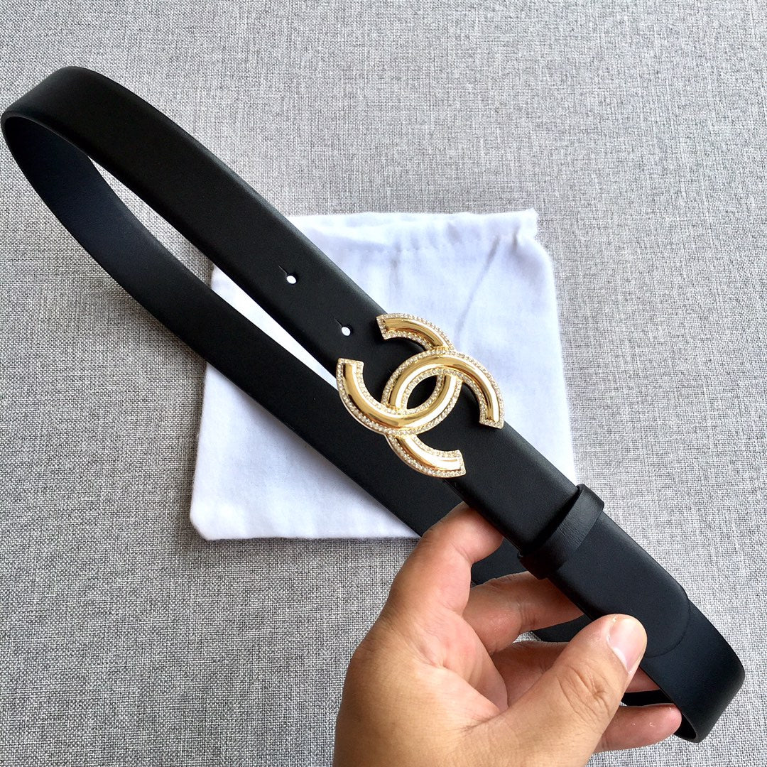 Calfskin metal letter buckle belt 3.0cm