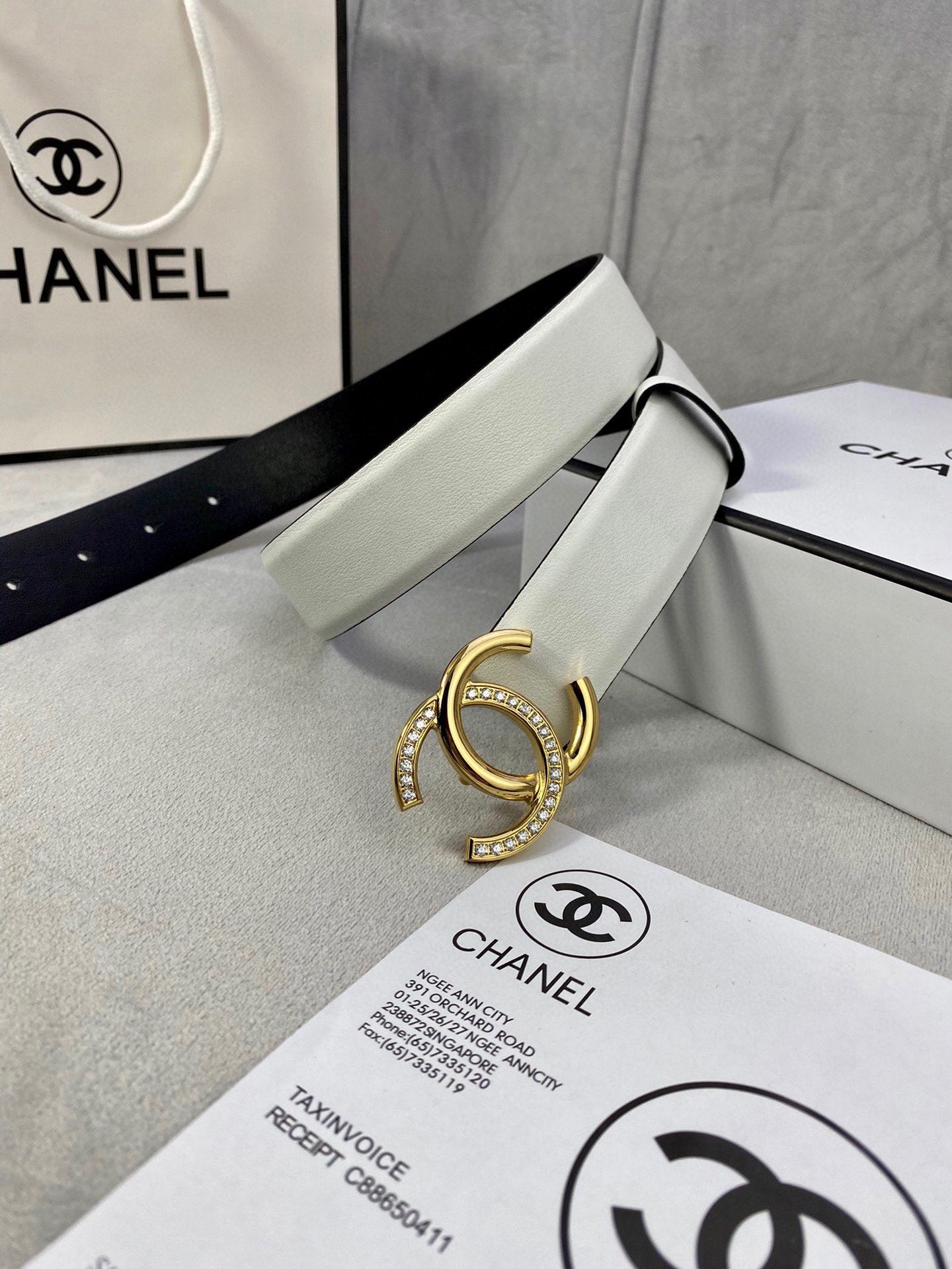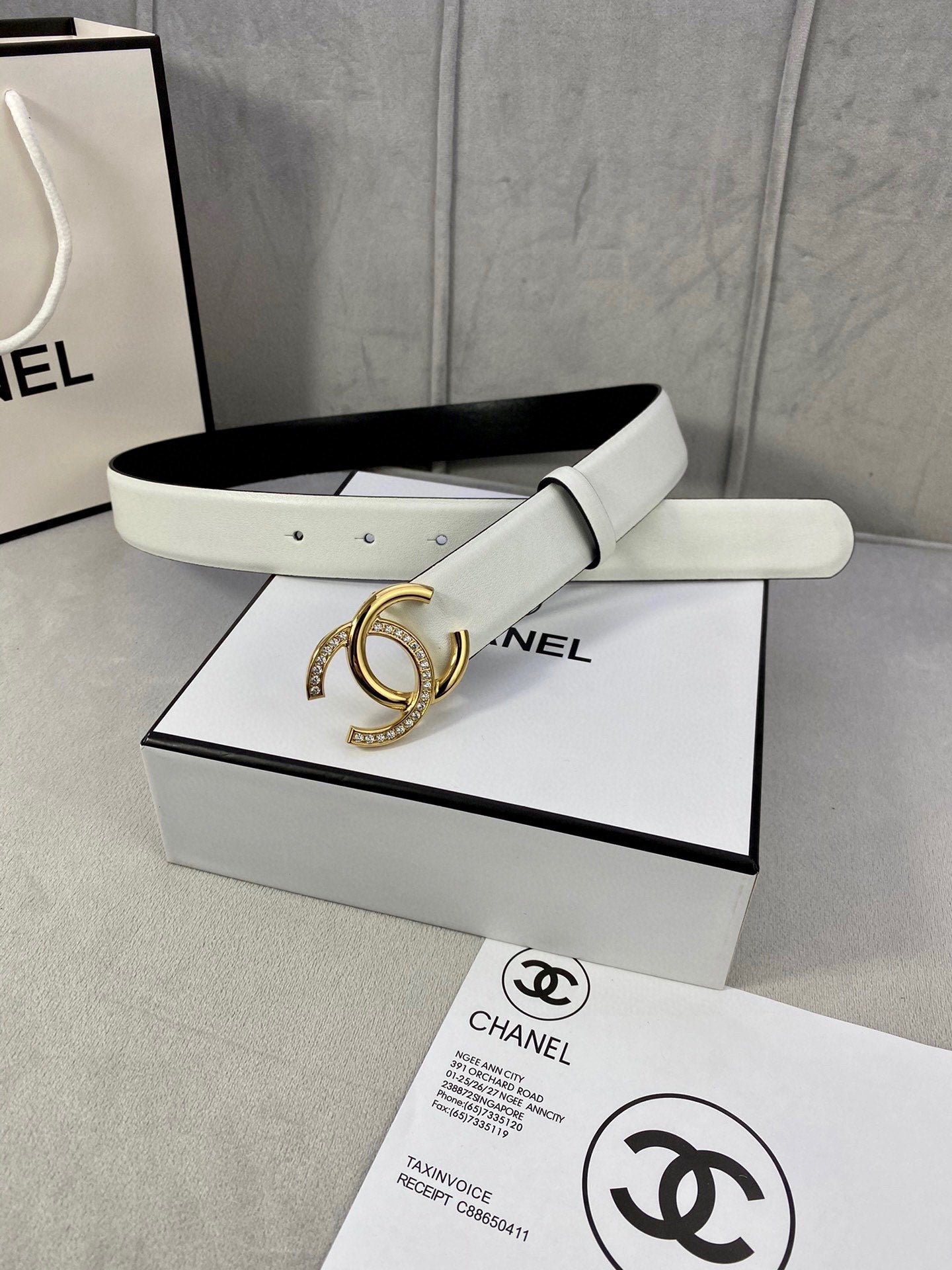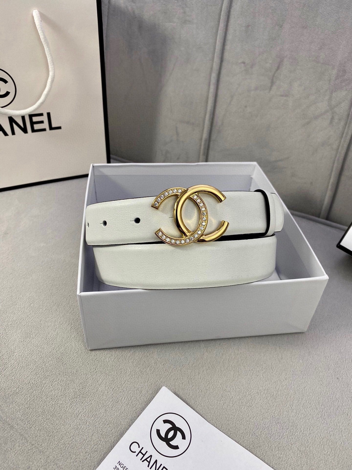 Cowhide leather diamond-encrusted steel buckle belt 3cm wide