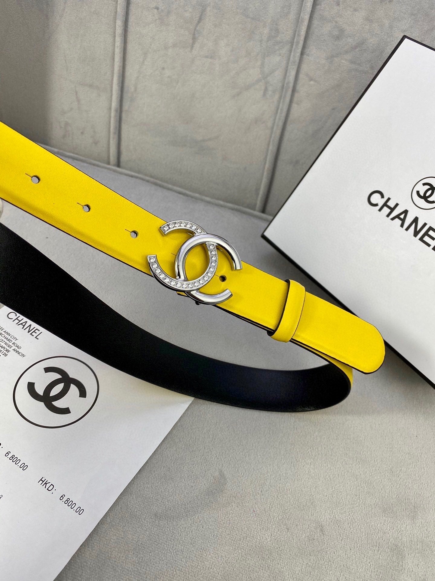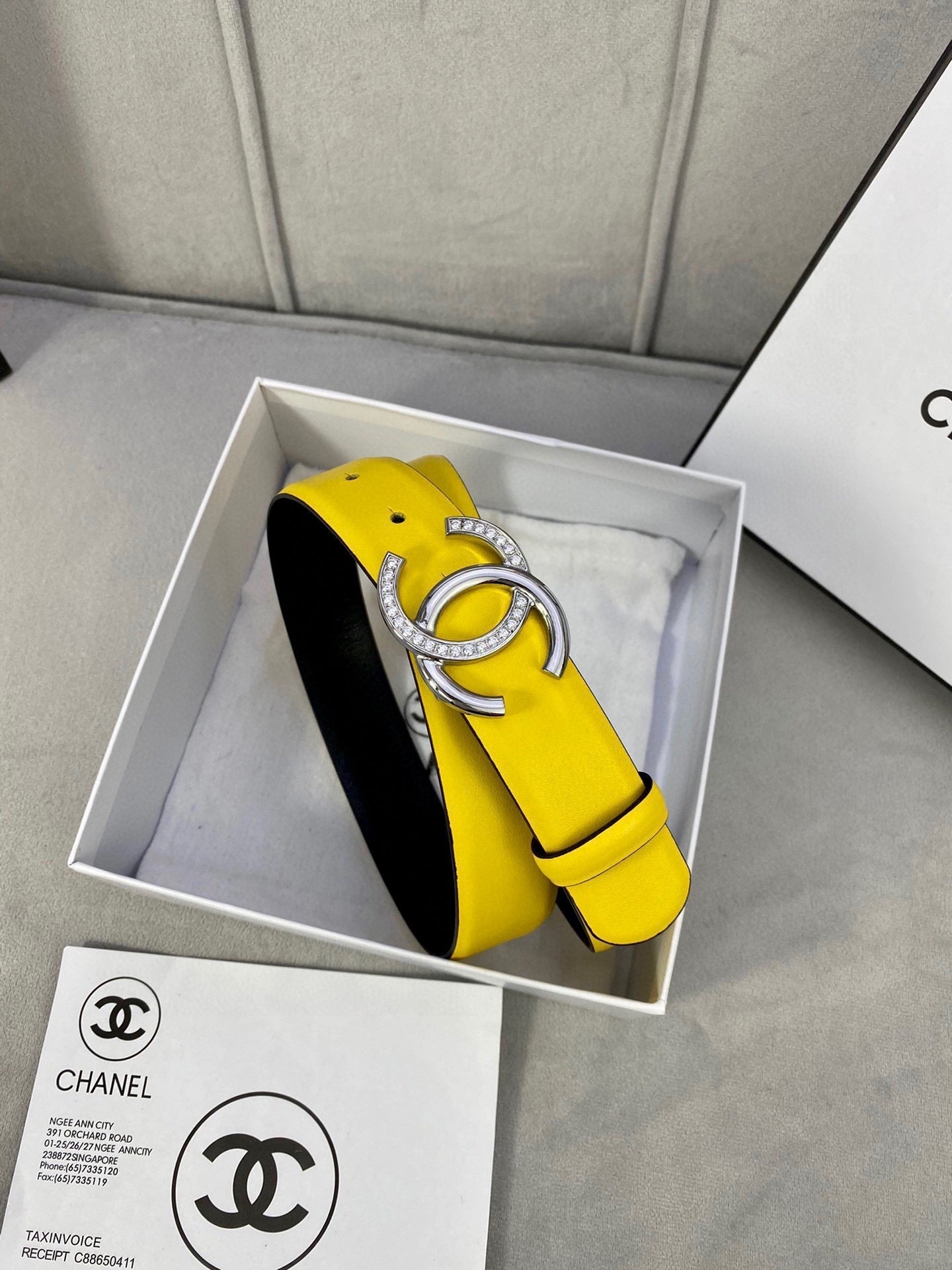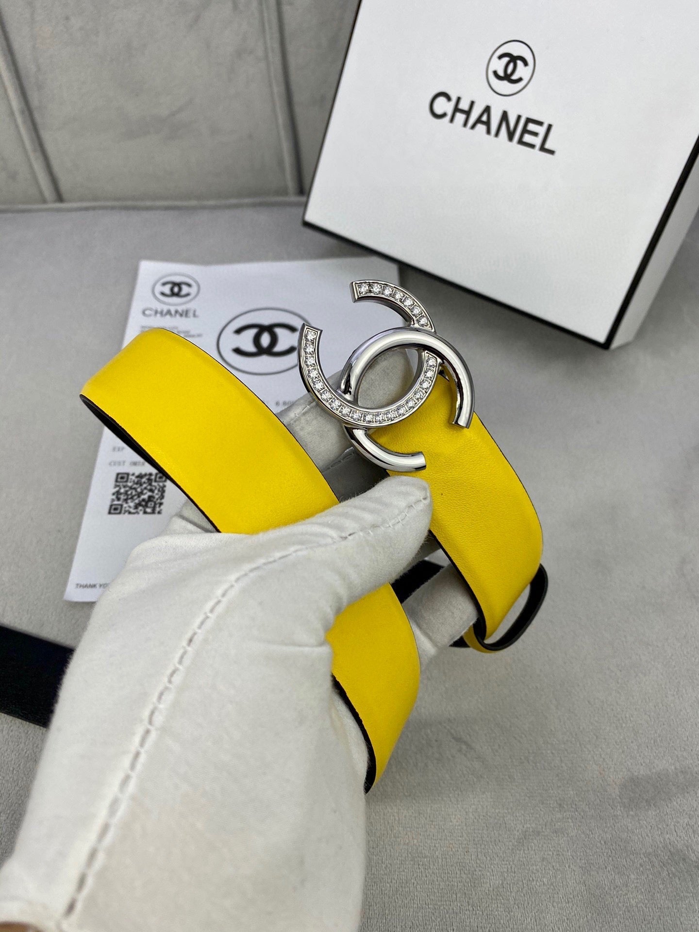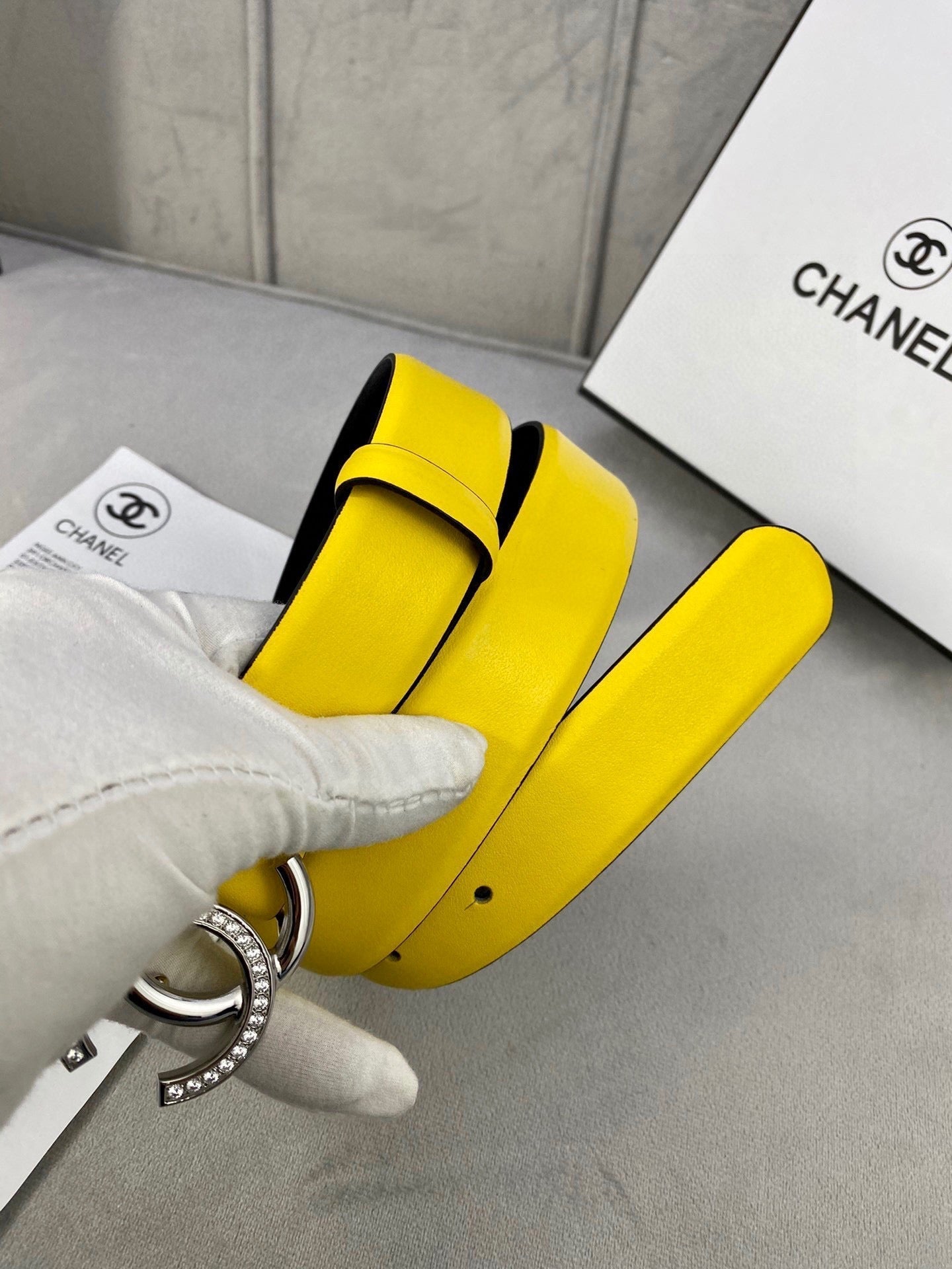 Cowhide leather diamond-encrusted steel buckle belt 3cm wide