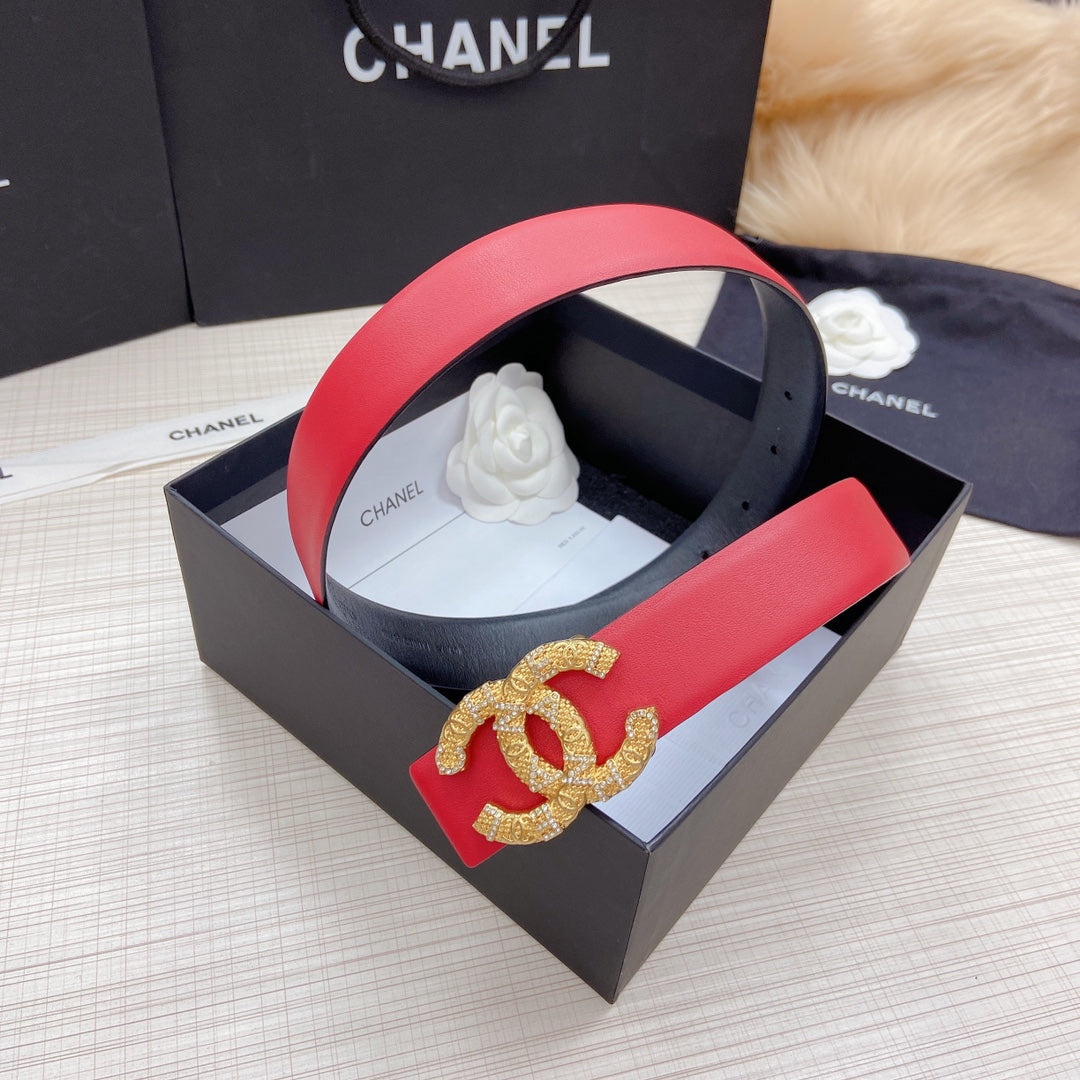 Double-sided imported top layer calfskin plain weave belt Classic brick inlaid