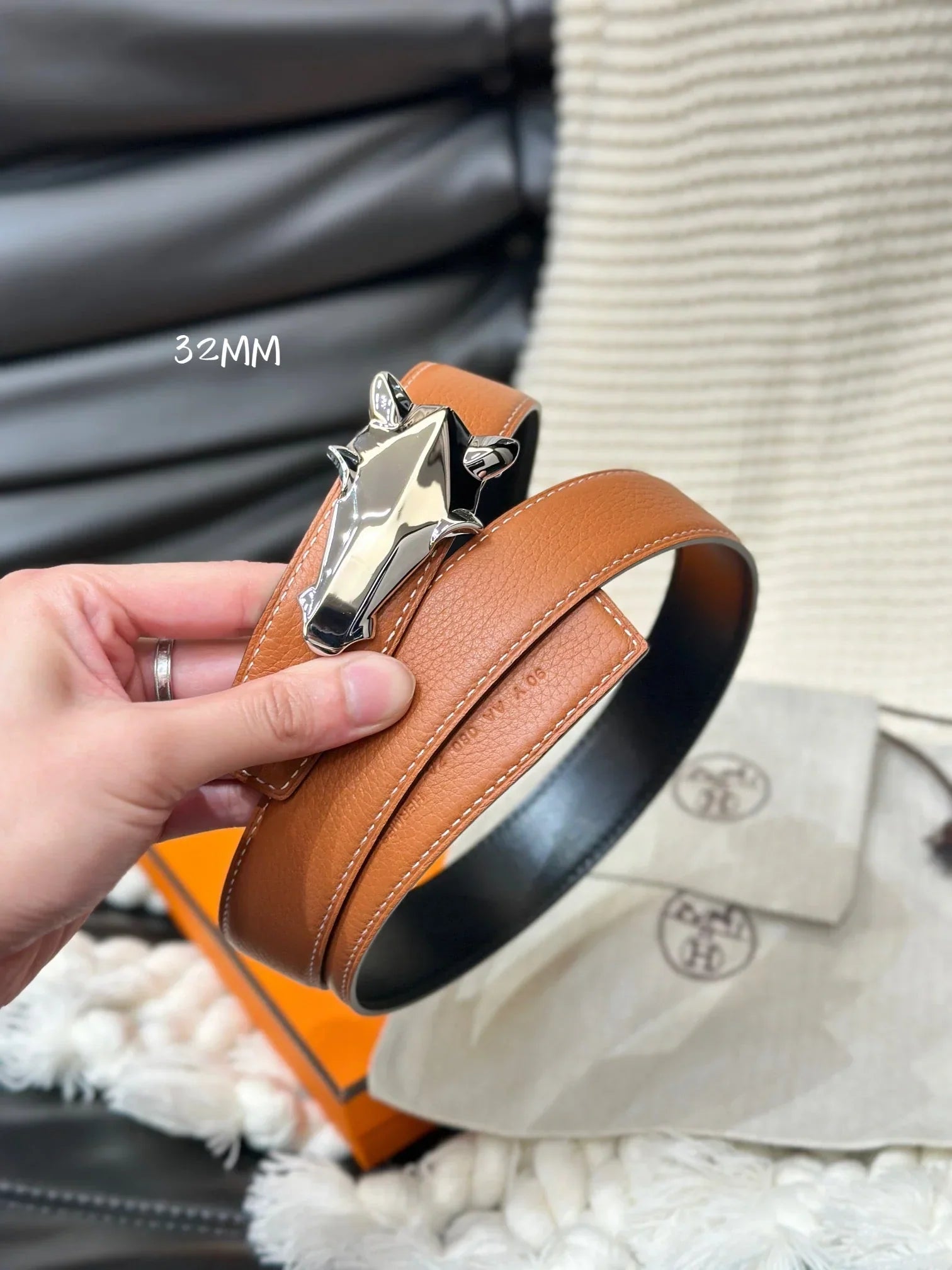 One of the brand's most coveted designs, this belt has been given a vivid update. One side of the belt features brightly colored calfskin. This inherently versatile piece is fastened with a polished buckle that complements the accessory's modern aesthetic.