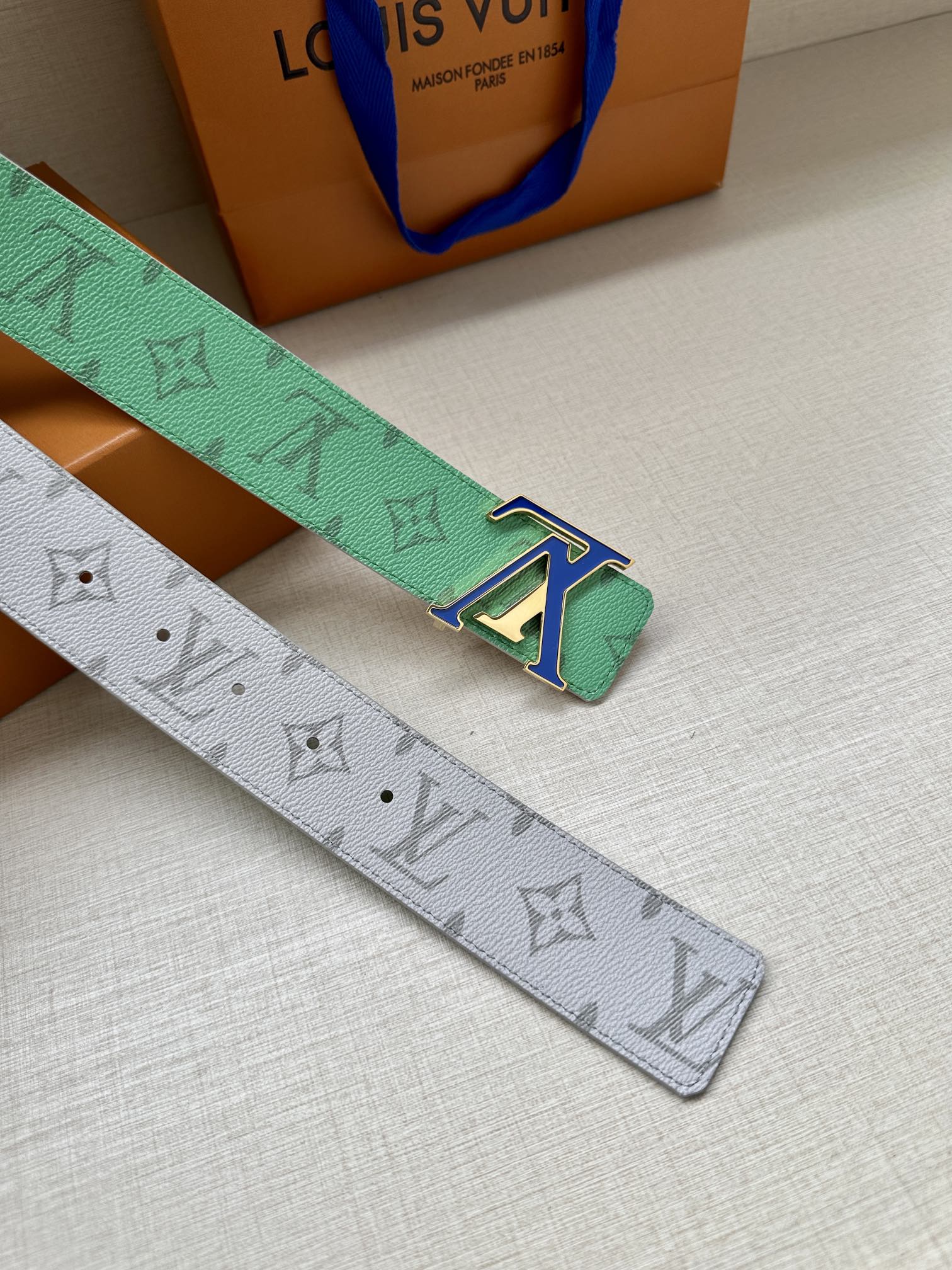 One of the brand's most coveted designs, this belt has been given a vivid update. One side of the belt features brightly colored calfskin. This inherently versatile piece is fastened with a polished buckle that complements the accessory's modern aesthetic.