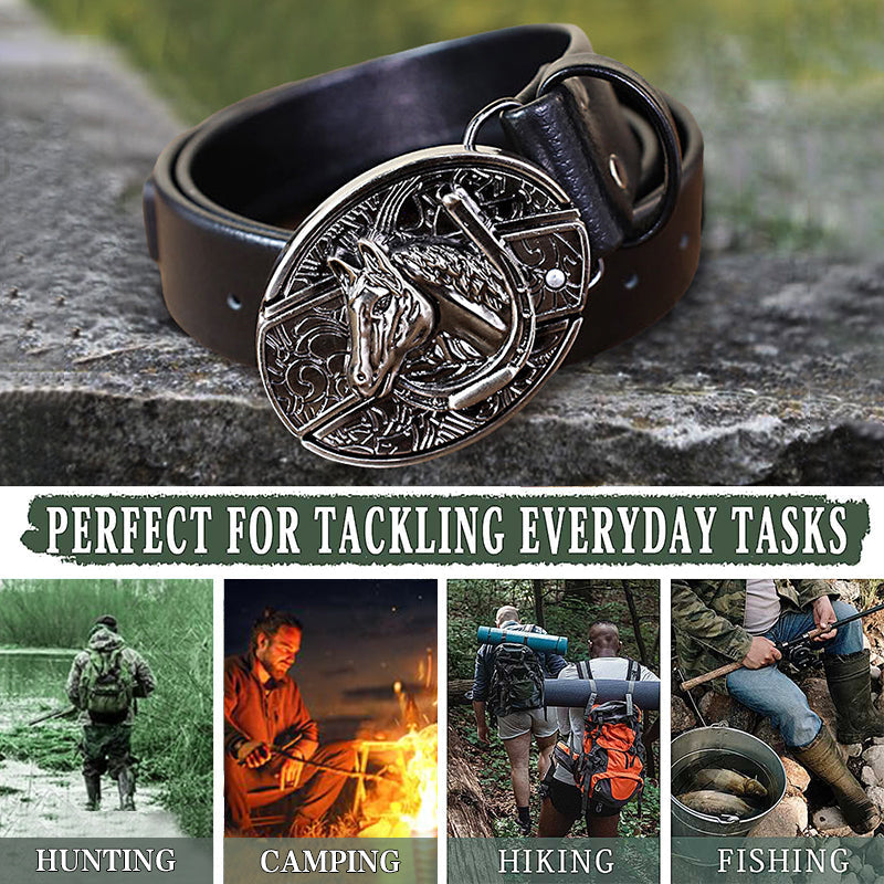 Men's Horse Head Leather Belt With Folding Knife